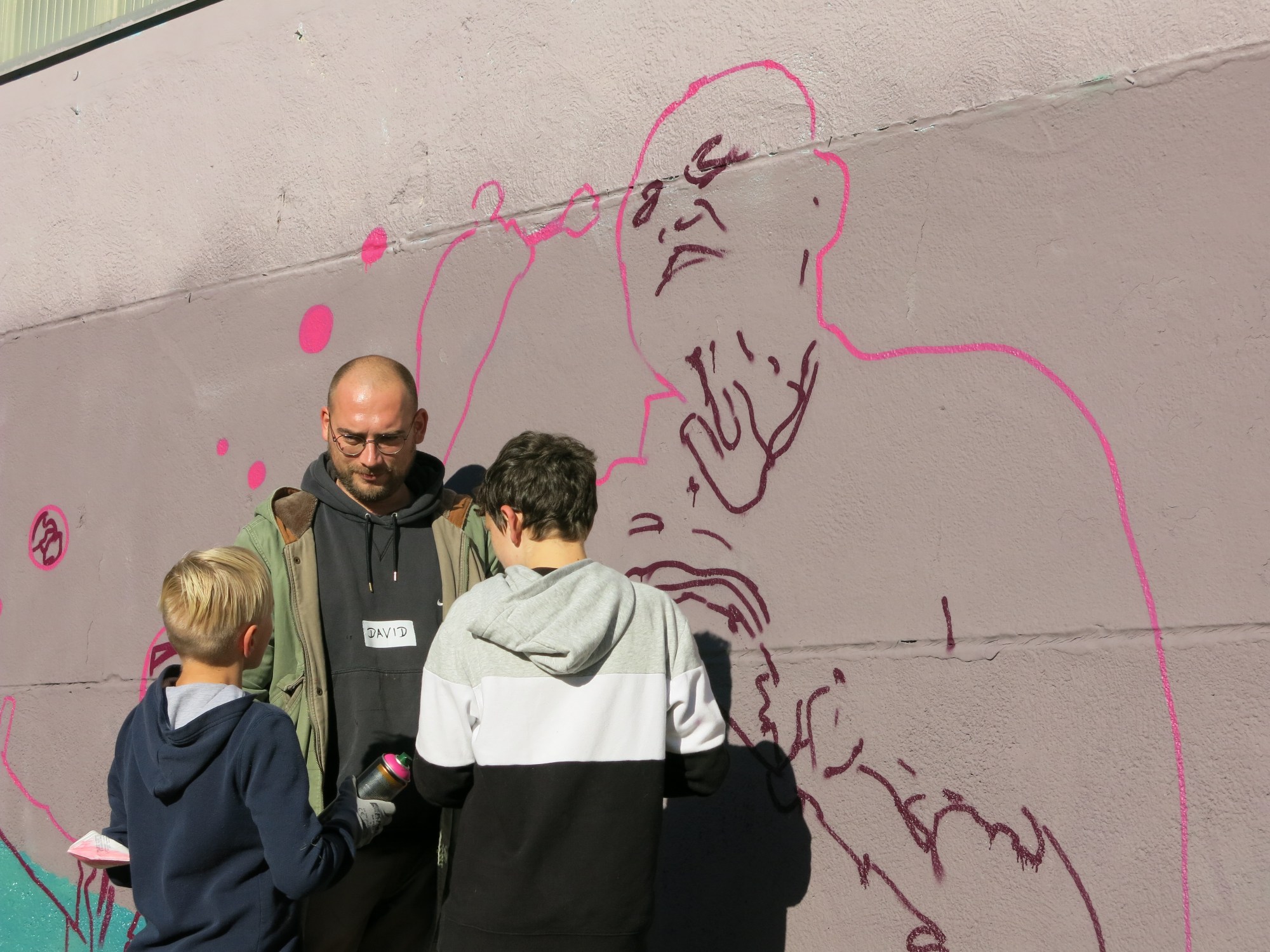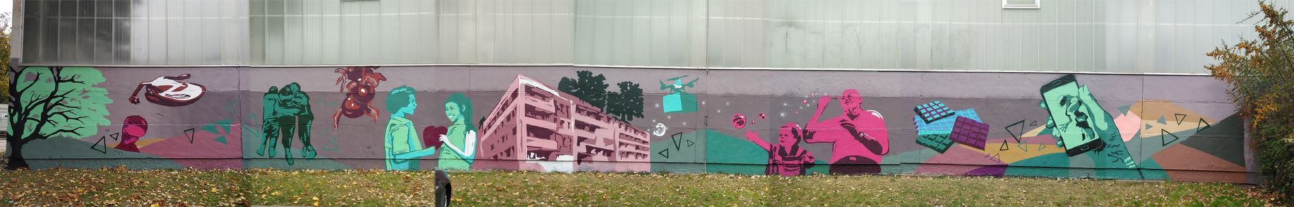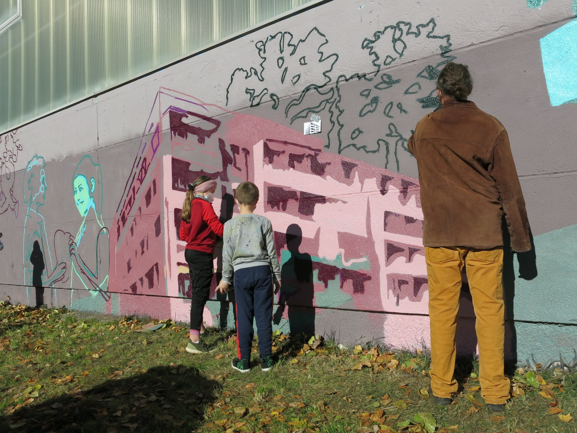 Im Oktober 2021 waren wir für einen mehrtägigen xtopischen Visions-Workshop in Erfurt am Wiesenhügel. Zusammen mit Spirit of Football e.V. luden wir insbesondere die jüngeren Bewohner:innen des Wiesenhügels ein darüber nachzudenken, wie sie im Übermorgen leben möchten. Gemeinsam mit den Kinder und Jugendlichen entwickelten wir auf Grundlage der Ergebnisse ein Grafitti für die Wand einer Turnhalle, das die Visionen der Teilnehmer:innen zeigt. Eine Evaluation im Frühjahr 2023 hat gezeigt, dass es auch andere Menschen aus der Nachbarschaft angeregt hat, über die Zukunft nachzudenken und dass es größteils positive Assoziationen weckt. Hier sind einige Impressionen, wie das Graffiti entstanden ist.