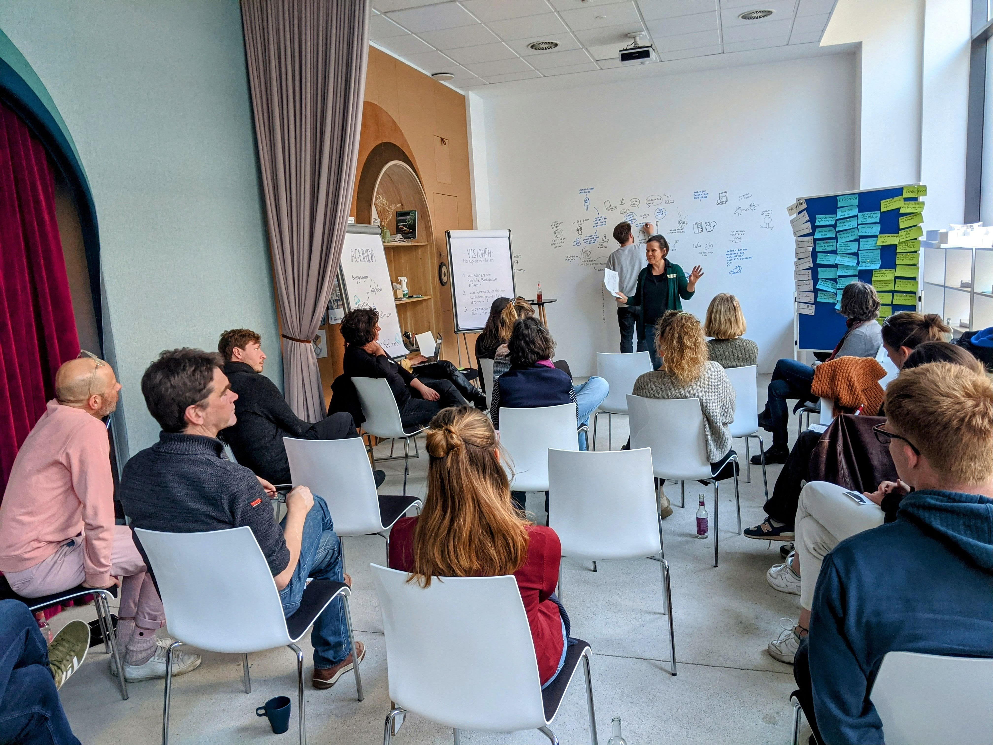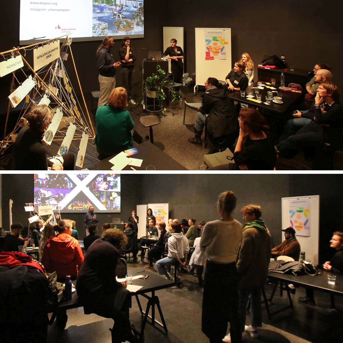 Einen gebührenden Abschluss fand unser Forschungsprojekt am 24. November 2023 im Futurium: Tanja, Richard und Jasmin stellten in einem dreistündigen Multiplikator:innen-Workshop die Toolbox für Xtopien vor. Knapp 30 Teilnehmer:innen probierten drei der acht Tools selbst aus und dachten darüber nach, wie sie diese Tools in ihren eigenen Wirkungskontexten anwenden und auch weiterentwickeln könnten. Wir waren völlig begeistert vom Ideenreichtum und den diversen Erfahrungshintergründen unserer Teilnehmer:innen. Herzlichen Dank an alle, die von nah oder fern dafür gekommen sind – es hat uns sehr viel Spaß gemacht! Herzlichen Dank auch an das Team des Futuriums für die Gastfreundschaft und tolle Unterstützung!