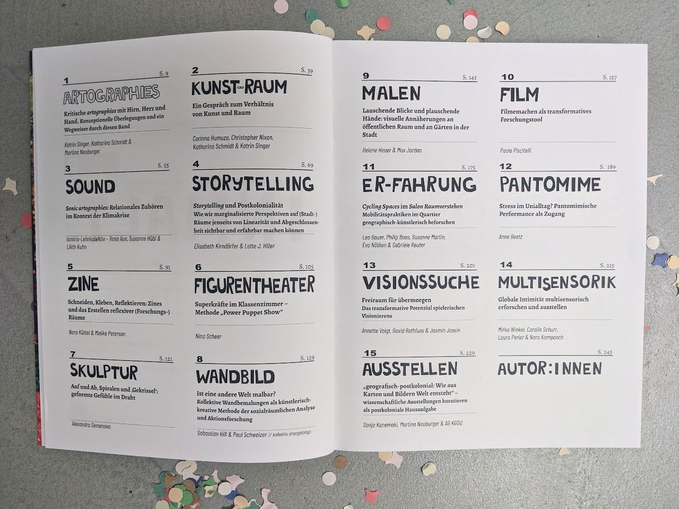 Artographies ist da! In diesem Werk zeigen verschiedene Autor:innen die Möglichkeiten und Grenzen kreativ-künstlerischer Praktiken auf und diskutieren, wie diese zu einer machtkritischen und raumbezogenen Wissenschaft beitragen können. Annette, David und Jasmin haben ein Kapitel zum Spielraum-Xperiment als xtopische Form der Visionssuche beigetragen. Der Sammelband ist open access hier zu finden. Wir danken den Herausgeberinnen Katrin Singer, Katharina Schmidt und Martina Neuburger herzlich für einen herausragend kreativen und konstruktiv-kritischen, wertschätzenden Publikationsprozess – einschließlich eines tollen Kreativitätsworkshops in Hamburg, bei dem die Visualisierung zum Kapitel entstanden ist. Sie zeigt eine Collage aus Einreichungen zum Spielraum-Xperiment, die ihr im Padlet finden könnt.
