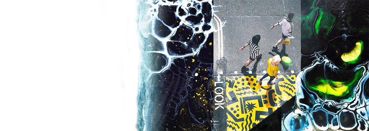 Großformatige Collagen aus Fotos, Bildern und Grafiken eignen sich hervorragend, um Assoziationen zu einem vielschichtigen Zukunftsthema anzuregen und ins Imaginieren von Zukünften einzusteigen.